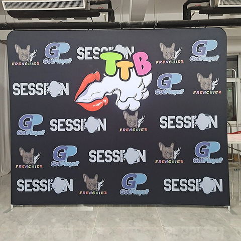Mur arrière soie extensible toile de fond photomaton Photocall cadre de scène arrière-plans personnalisés Pop up comptoir stand produit